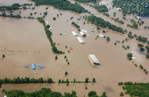 NEO College. Flooded the football field, gym, Nursing building, student union
