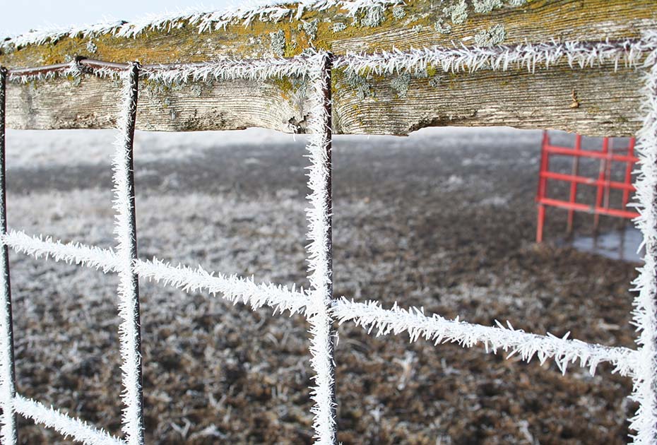 The first chain I grabbed to open a gate was covered with fine and sharp points of frost.